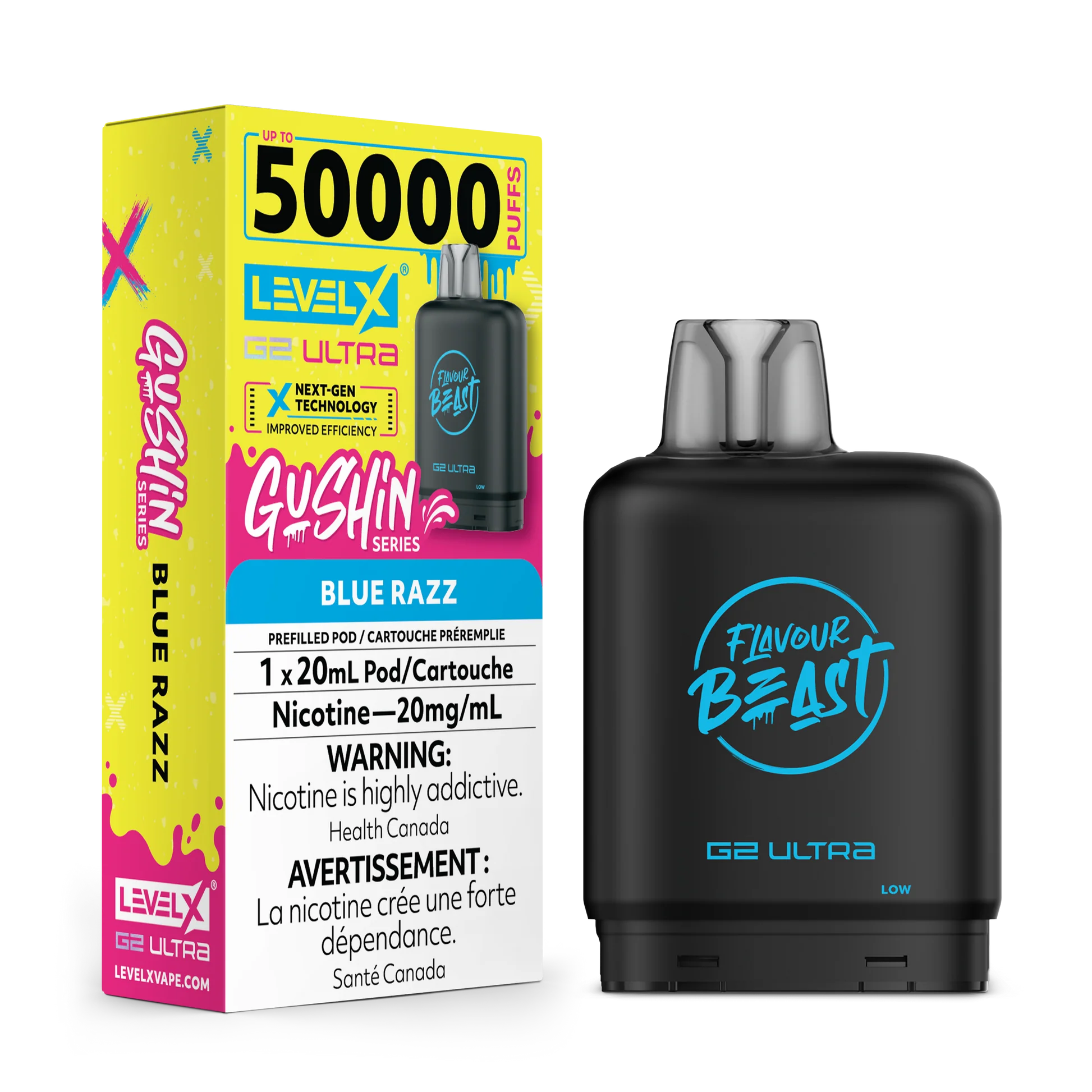 Blue Razz Flavour Beast Gushin Level X G2 Ultra 50k Disposable Vape Pod