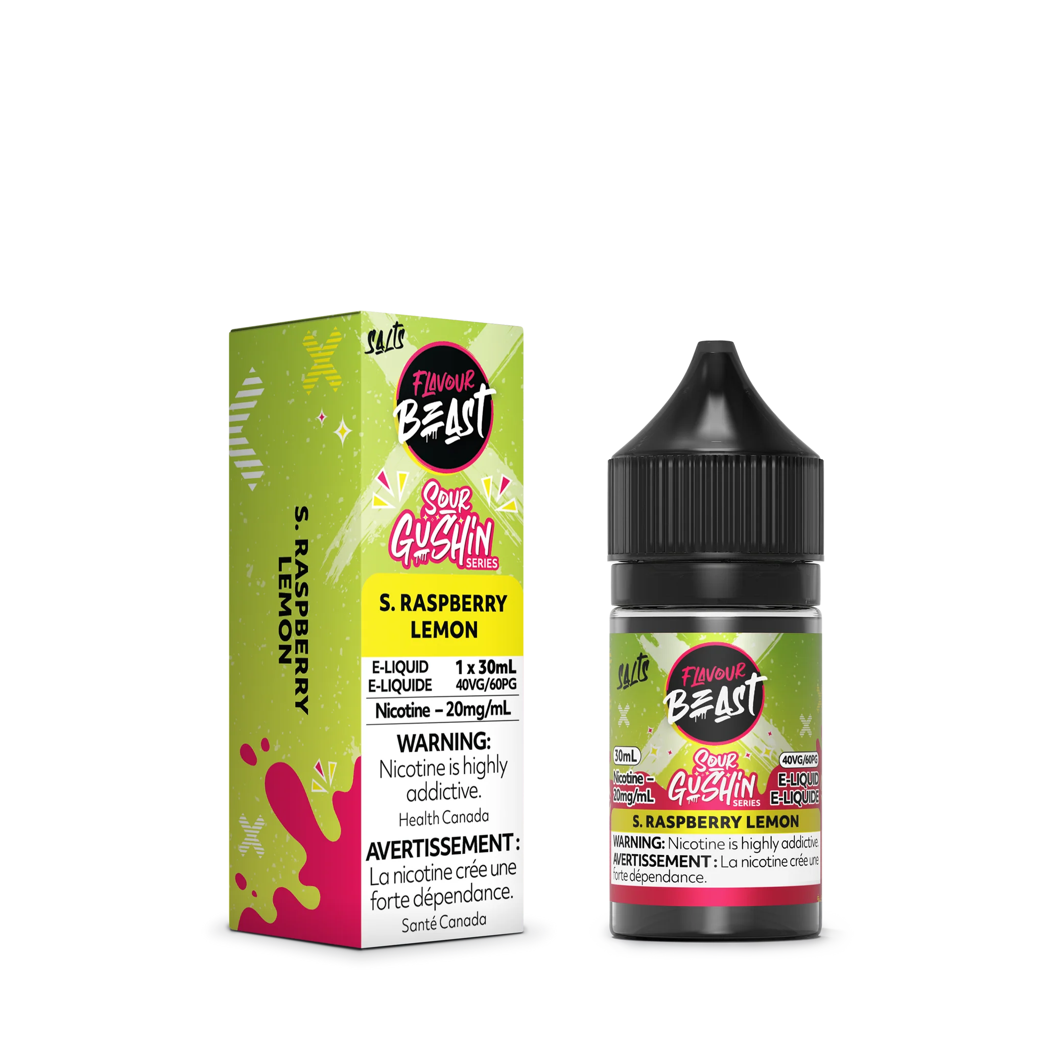 S. Raspberry Lemon 20mg Flavour Beast Sour Gushin 30ml Nic Salt E-liquid
