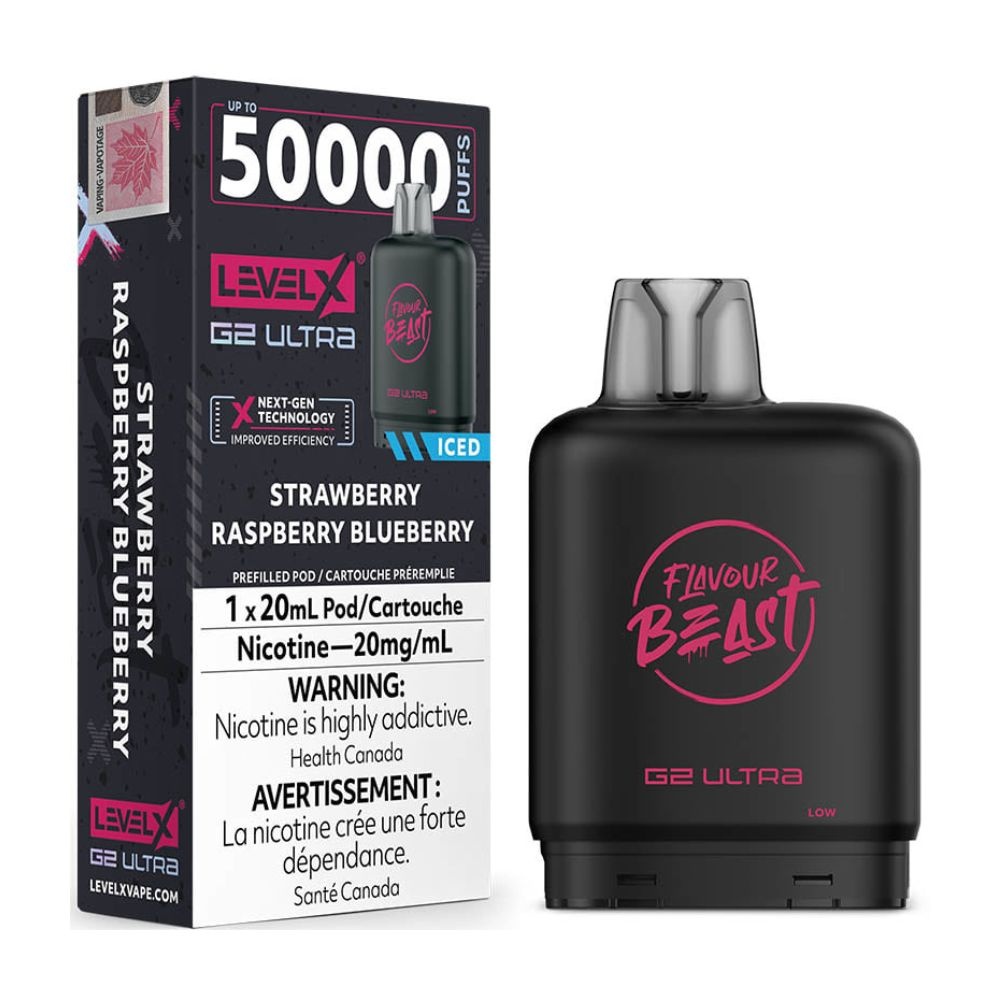Strawberry Raspberry Blueberry Ice Flavour Beast Level X G2 Ultra 50k Disposable Vape Pod